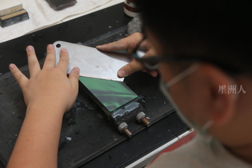 不久前他曾参加吉隆坡的市集摆摊,并在现场磨刀,“许多人反馈说,不知道有磨刀这行业,有的甚至不知道原来刀是可以磨的,尤其是年轻一辈,完全没有这概念。”这就好比越来越少见的磨剪业,很多人都没看过磨剪刀的手工艺,也不晓得剪刀是如何磨的。