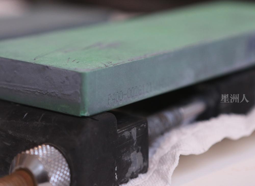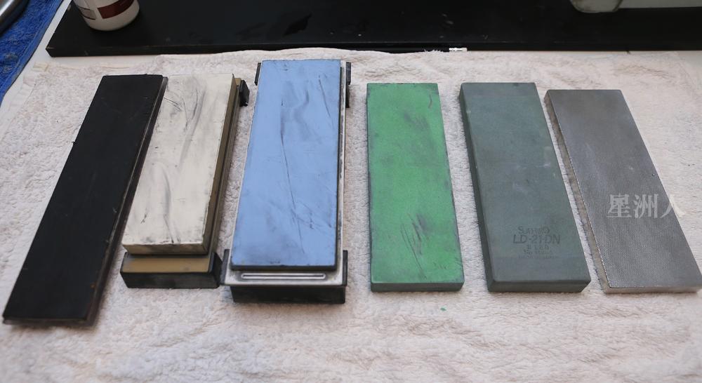 摆在甘浚宏桌上的就有5个磨刀石,各别为140、180、400、1000、6000目数,各别有不同的功能强处。