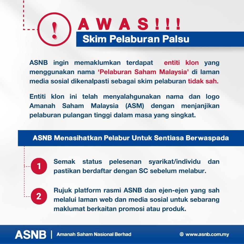 该公司昨日在社交媒体发文说,该公司已鉴定使用“Pelaburan Saham Malaysia”社交媒体页面的仿制组织提供不合法的投资配套。