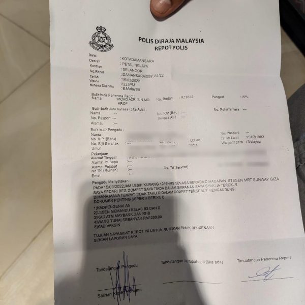 “根据男子照片的搜索结果,发现不少网络帖子贴出他的照片,指在各地多家购物商场被类似手法行骗,即男子使用伪造的身份报警称遗失大马卡,再利用伪造报案书,甚至真实的报案书,到商场寻找独自一人的事主博取信任和同情,结果多人把钱借给他,分别损失数百至1500令吉。”