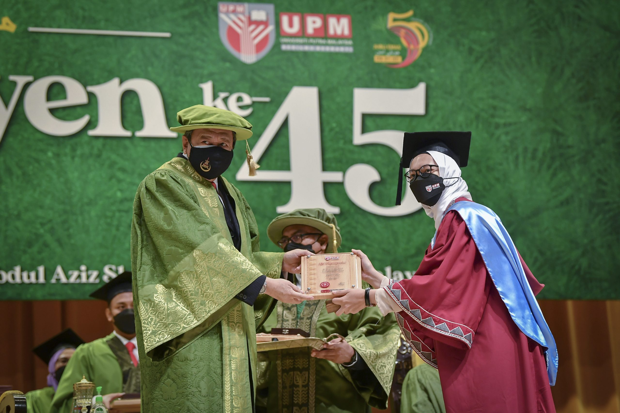 马来西亚博特拉大学(UPM)于周六举行第45届毕业典礼,本届毕业典礼共有6142名毕业生,分别是484名博士学位毕业生、1611名硕士毕业生、3564名学士毕业生,以及483名专业文凭毕业生。(马新社图)