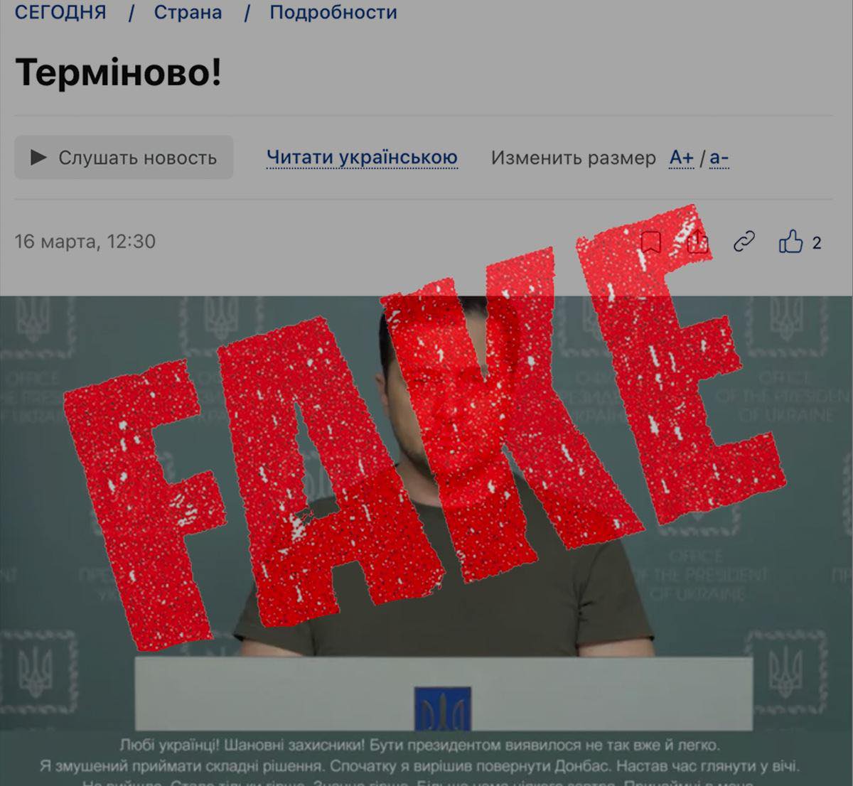 (八打灵再也19日讯)为求战争尽快平息,乌克兰总统泽连斯基通过电视台和新闻网站向俄罗斯缴械投降?乌方表明,这是一起骇客攻击事件,网传视频也是经过深伪(deepfake)技术处理。