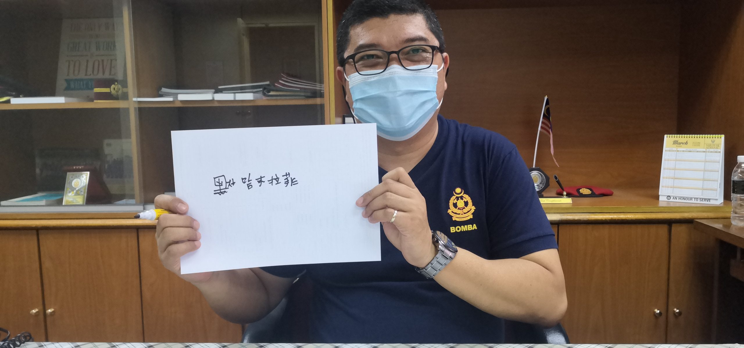 他说,担任公务员后,确实少有机会说华语,偶尔遇到华人申请消防准证,就会把握机会用华语搭腔。