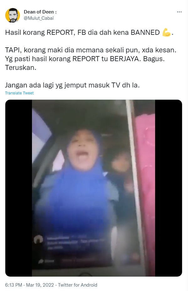 有网民就开心得在脸书宣布,大家的集体举报行动已经成功,但她其他的社交媒体账号仍可使用。
