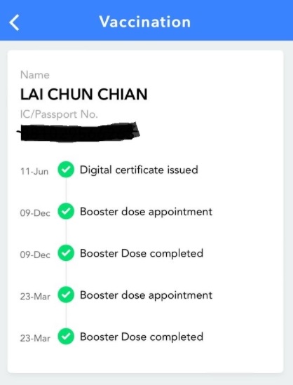 “我的第四剂疫苗预约时间是下午2时,但我在中午1时就到相关诊所。诊所的职员在核对我的大马卡及与疫苗相关的资料后,就为我接种第四剂疫苗。”