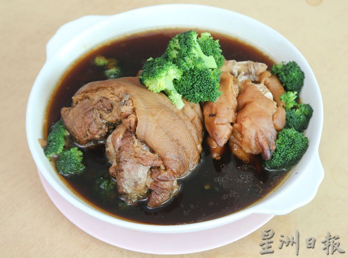 东主李志强表示,财记猪手也称为“虎皮猪手”,乍看皱皱的猪皮有如老虎皮的纹路,目前一只猪手的价格是48令吉。