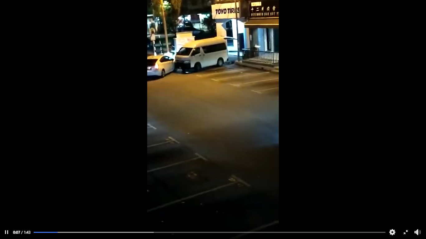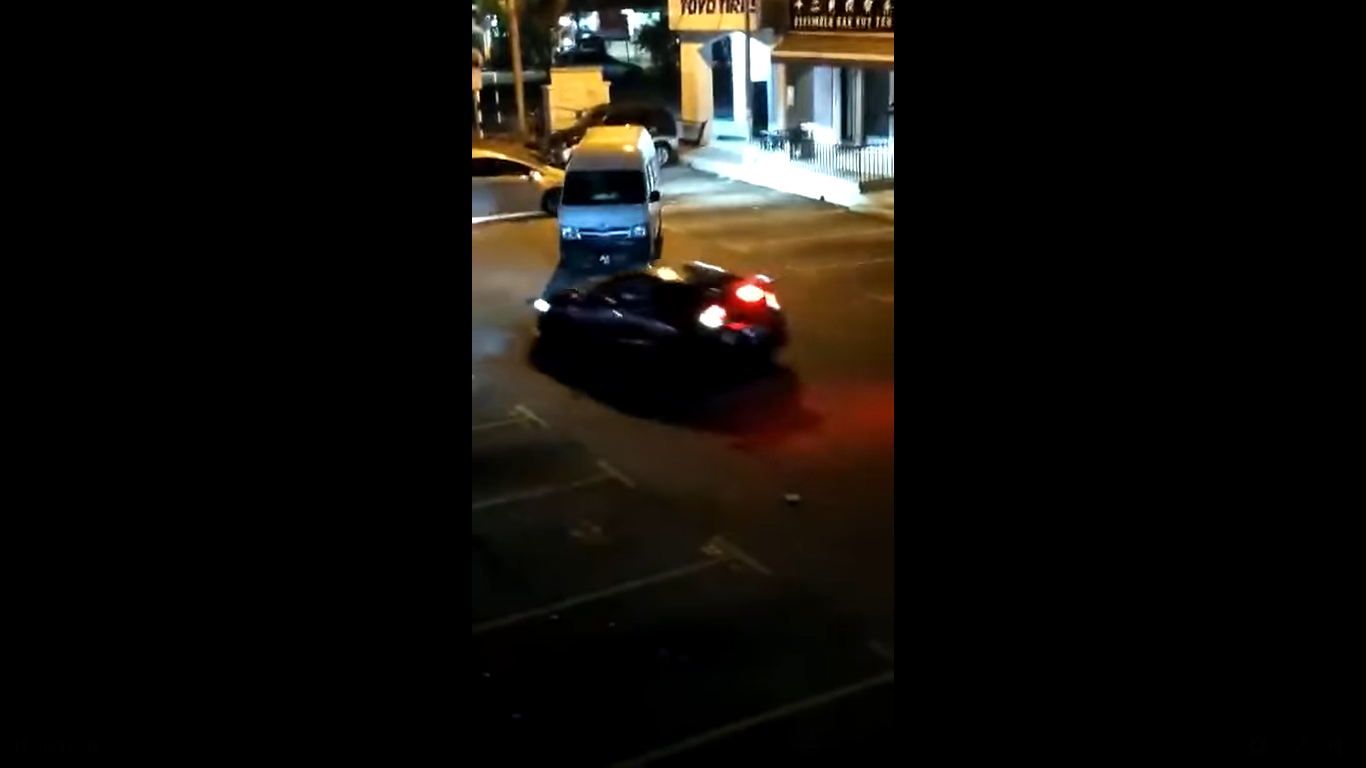 另一则视频则可见三辆轿车在歹徒的货车前不断鸣笛,试图阻挡歹徒逃离现场。其中一个歹徒手持武器,看起来想趋前恐吓白色轿车司机,但司机直接猛踩油门,反而吓得歹徒向后逃走。