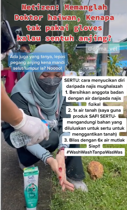 依玛说,也有一些人会询问穆斯林兽医,在触摸狗后需不需要洗泥浴(mandi selut),但其实只要以穆斯林的洗净仪式(Sertu),洁净双手和沾染处即可。