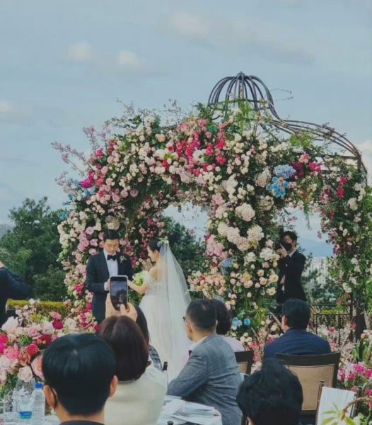 从韩媒释出的照片来看,他们的婚礼场地身后就是一片江景,红色屋簷的建筑物围绕着四周,隐私度非常之高。可惜暂时仍未有高清的现场照流出,证明了这次世纪婚礼的严谨程度外,粉丝也希望到场艺人能公开更多照片。