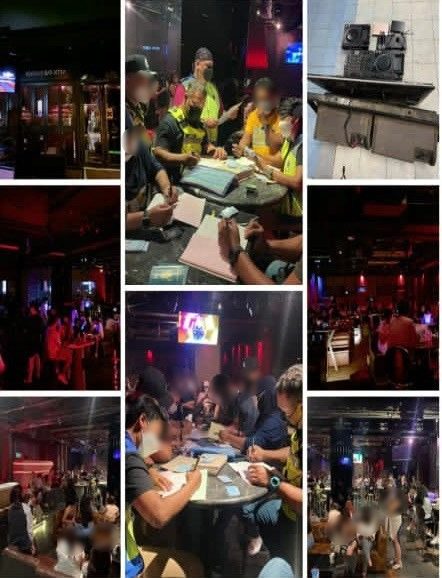 “警方援引2021年预防和控制传染病法令第17(1)条文,向其中的本地人60男37女开出罚单;另援引移民局法令第6(1)(c)与55B条文,扣查8名外籍男子及2名外籍女子。”