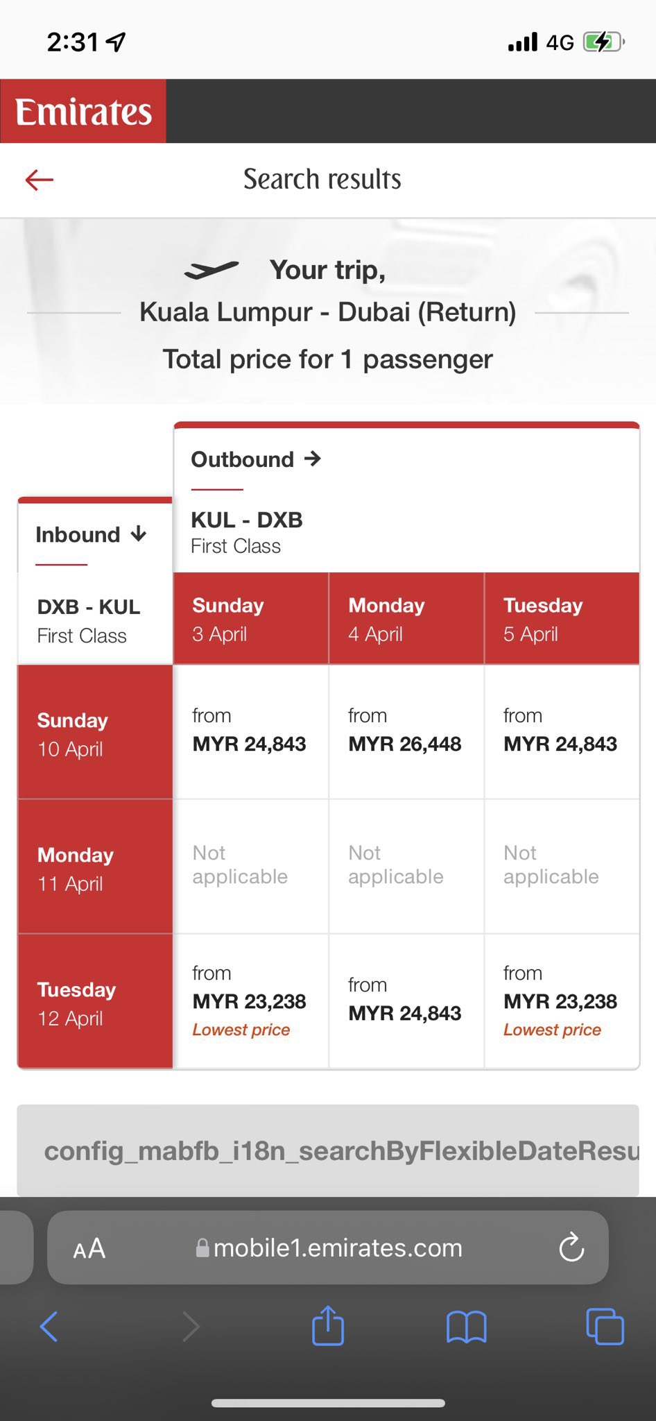 也有网民上阿联酋航空网站搜寻,一张从吉隆坡飞往迪拜的头等舱机票价格介于2万2000令吉至3万令吉之间。