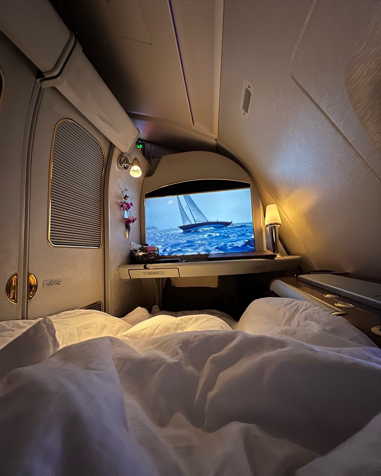 阿联酋航空头等舱的设备一流。(tasnimshah_推特截图)