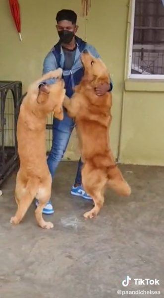 @paandichelsea Finally after 486 days….. I meet my babies Simba and Nala🥰😭☹️#goldenretriever #lehlusimbanala #singaporelockdownparithapangal #doglover #simba #Nala ♬ original sound – 🔵Paandi Chelsea🔵