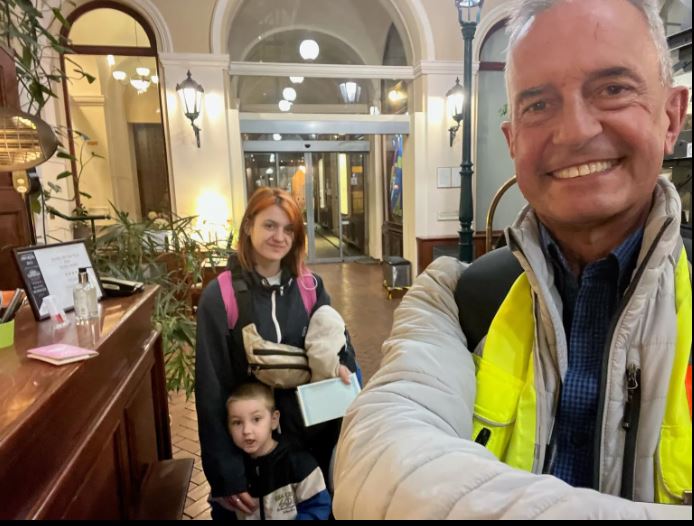 他的第二趟任务是驾车1000多公里,把8名乌克兰难民从普瑟米斯载到布鲁塞尔。这批难民是来自基辅的特玛拉和她的儿子、母亲,还有她的妹妹和其2名子女,以及一名女士及其儿子。2天的车程中,他们在德国东部城市德累斯顿过夜,汤普森帮这8名难民支付旅馆钱。