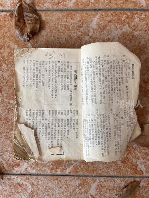 李永球写讣告时的参考书《家礼通书》。(李永球提供)