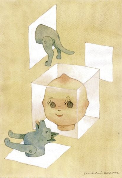 附近有一座破旧不堪的木桥,看来不适合踩过去,得等天亮再寻找走失的小狗。我用手电筒照了照树身,可能会发现像大哥摘到的鲜甜熟果,照了树头,往上移高,光线已经高过我的头,果然在树干交叉位置有果实,安静的挂着,我一时欣喜,学大哥赤脚攀爬而上,用电筒照亮,赫然看到的是一具被砍断的婴孩头颅。