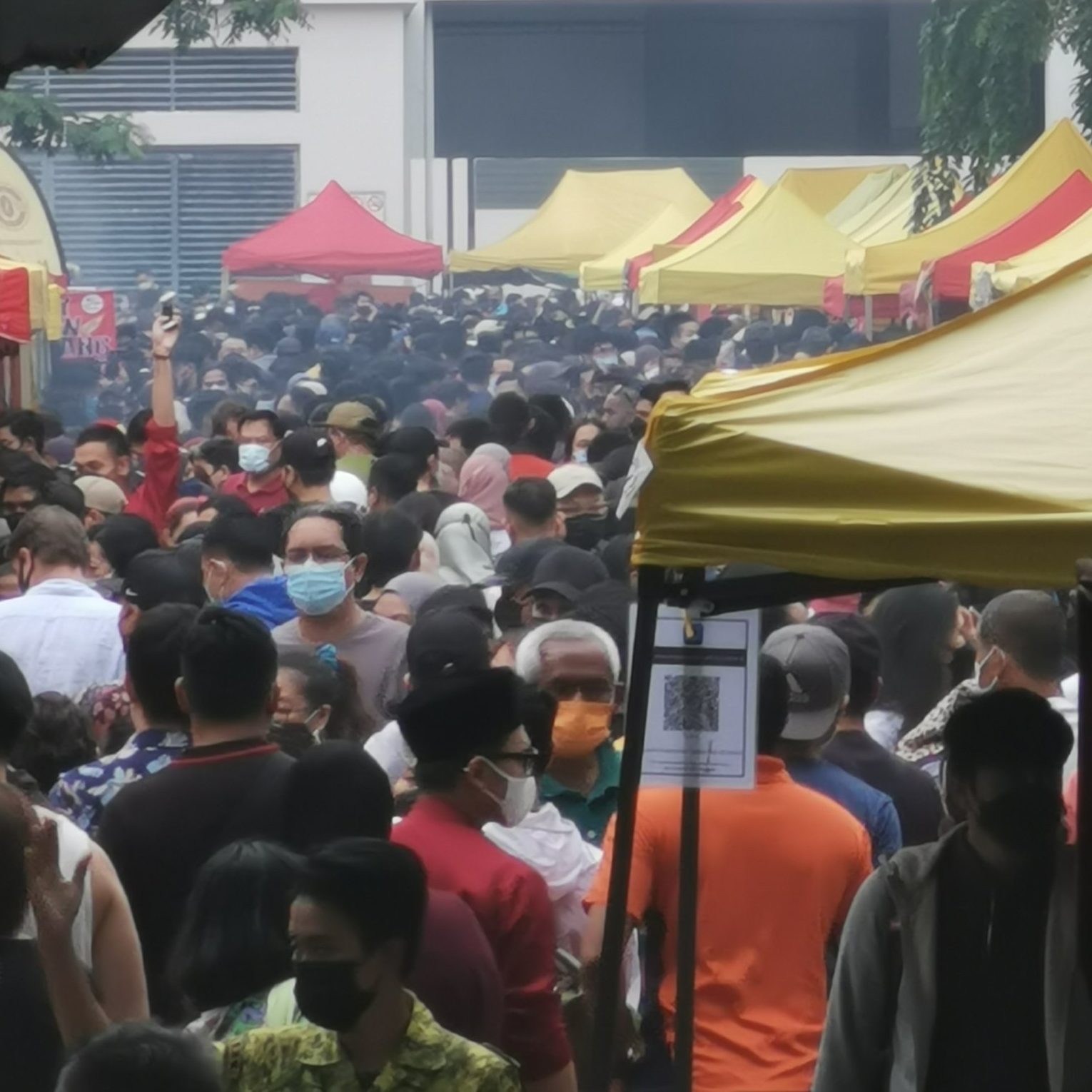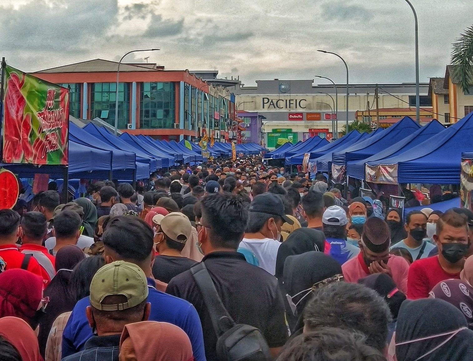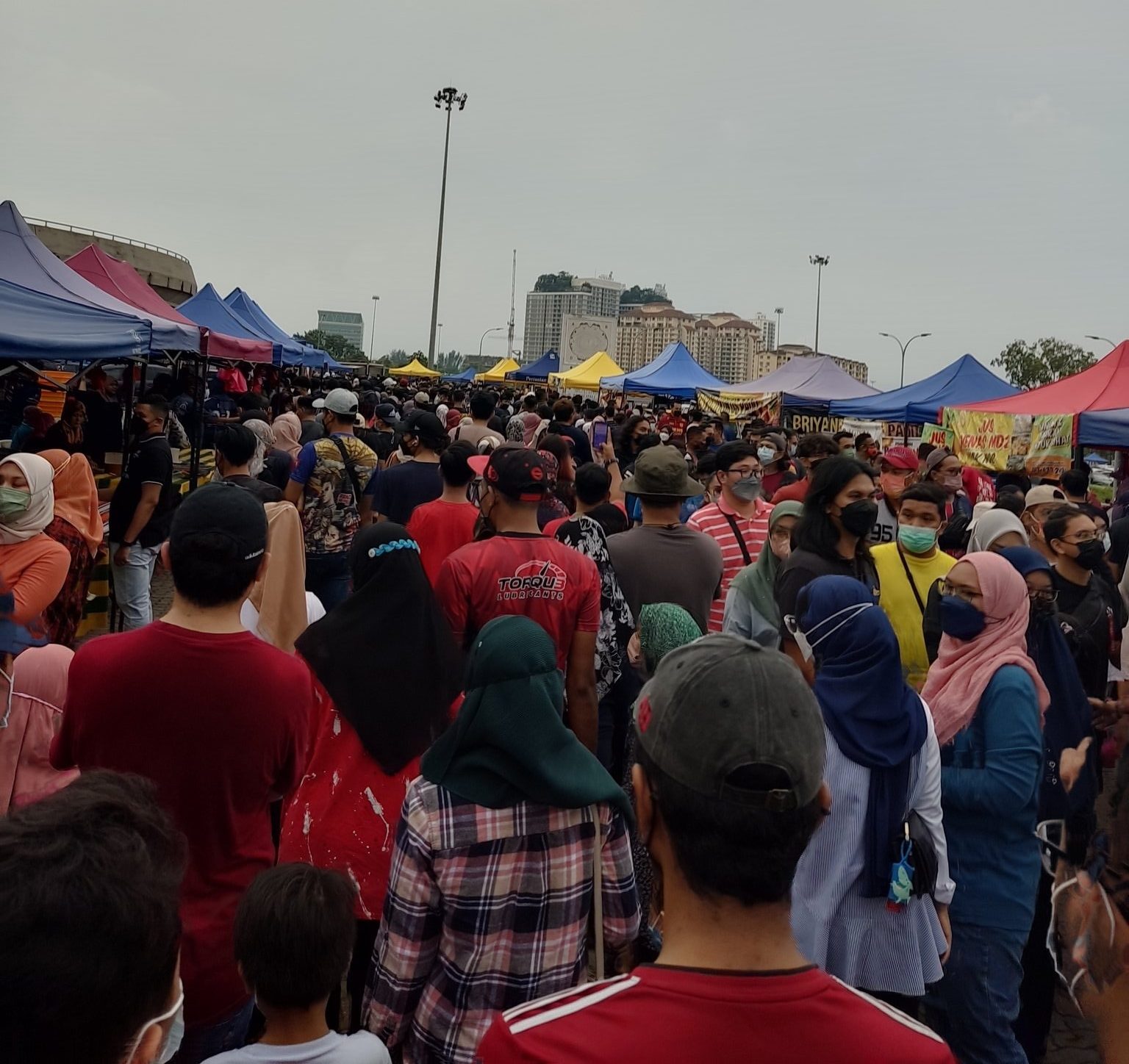 律师锺盈欣就拍下了敦依斯迈花园(TTDI)斋戒月市集万头攒动的照片,只见人满为患,人与人之间似乎挤在一起,毫无距离。