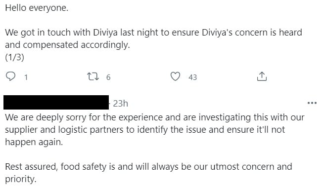 咖啡厅也在迪威雅的帖子下留言,表示已经联系她,确保她的担忧有被聆听,并作出补偿。
