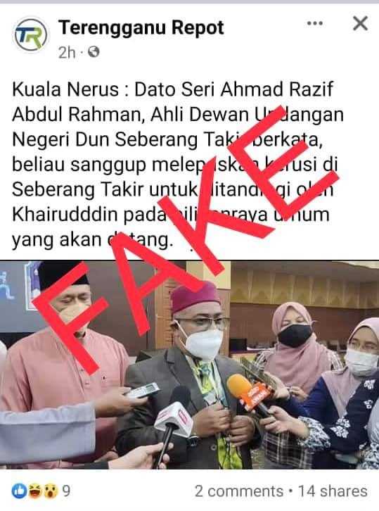 阿末拉兹夫强调,他不曾对外发表相关言论,脸书流传的帖文是不正确、造假及严重毁谤,企图打击他身为士布浪达吉区州议员的形象。