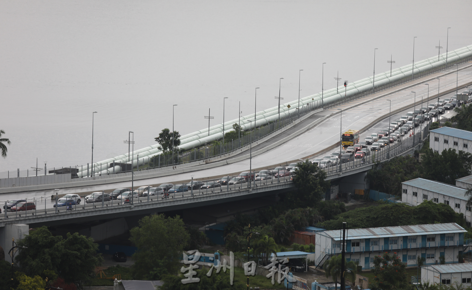 早上8时许,长堤车龙已是“见头不见尾”,不过,长堤虽密密麻麻都是车辆,通关速度依然非常快;到了10时左右,长堤在一阵大雨后交通恢复通畅。