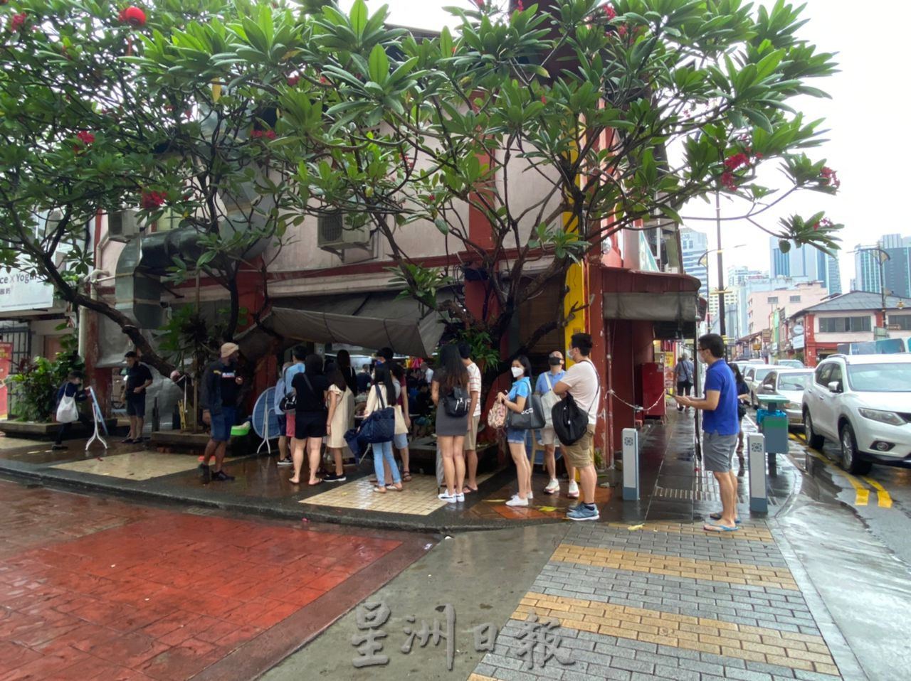 新山陈旭年文化街随着许多人从新加坡入境新山而热闹起来,几乎所有著名老店都排长龙。(张文慧摄)