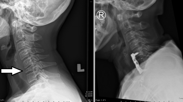 照了X光后,证实了是第6节颈椎崩塌,压迫神经线,导致疼痛和手指麻痺无力。方太只有58岁,不太可能因为骨质疏松症造成颈椎崩塌,据我判断,骨转移的可能性更大。