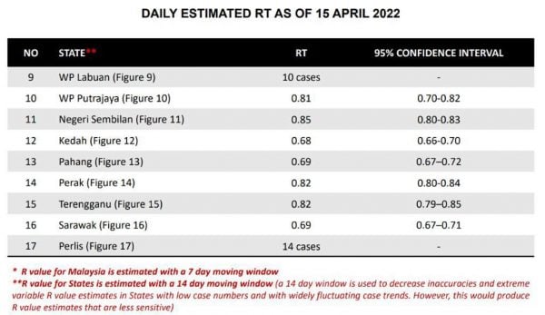 根据卫生总监丹斯里诺希山公布在社交媒体的数据显示,除了玻璃市与纳闽分别新增14宗和10宗病例,没有公布传染数之外,各州和直辖区的基本传染数皆低于1.0。