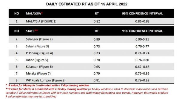 (八打灵再也16日讯)随著我国单日确诊病例在昨日降至9673宗,全国基本传染数(Ro/Rt)也下降至0.82,在连续四日上升后有所下降。