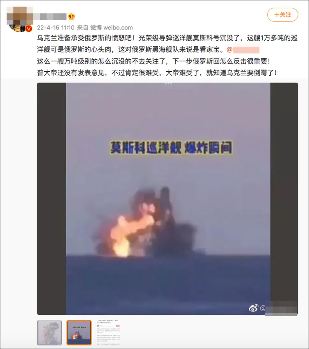 4月14日,网上就流传一段影片,据称是俄罗斯黑海舰队旗舰“莫斯科”号被导弹击中爆炸的视频,显示一艘船只发生剧烈爆炸,冒出滚滚浓烟。