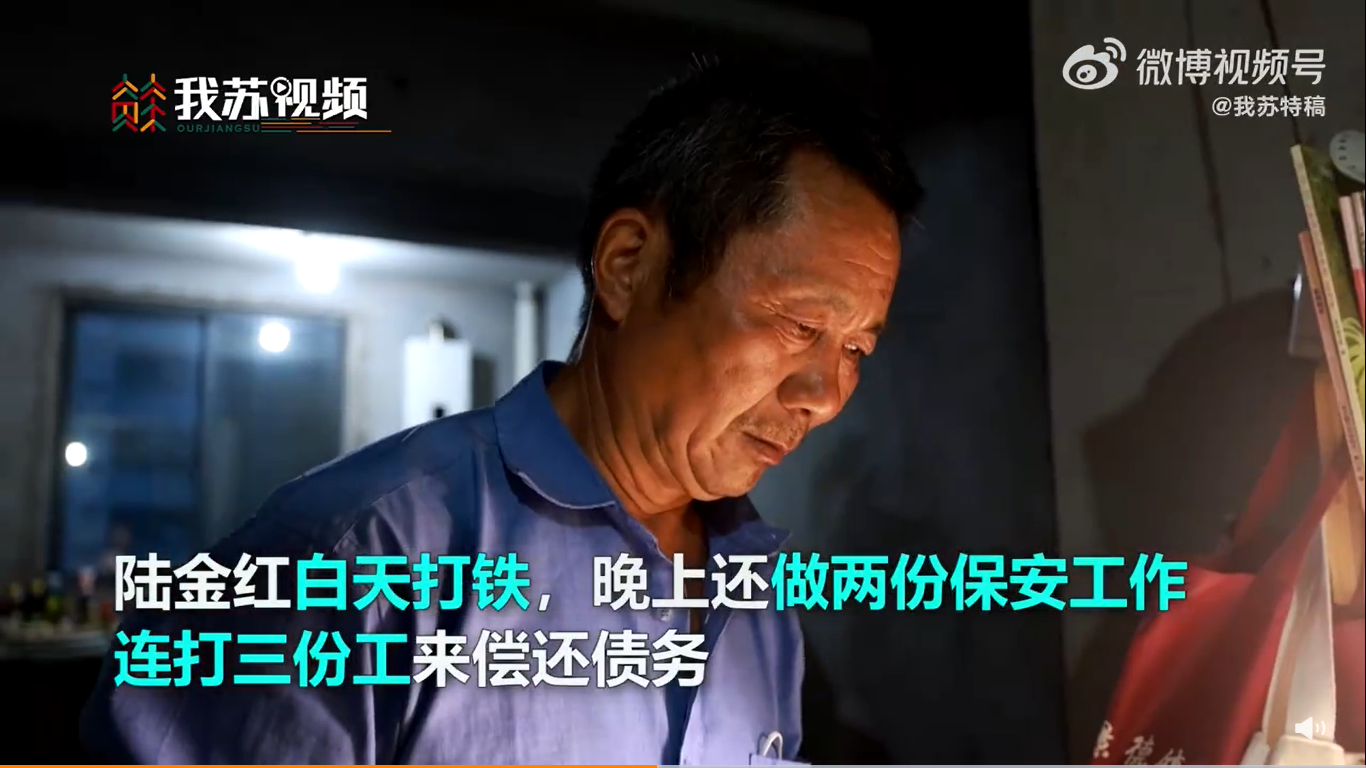 为了偿还债务,陆父连打三份工,白天打铁,晚上还做两份保安工作。