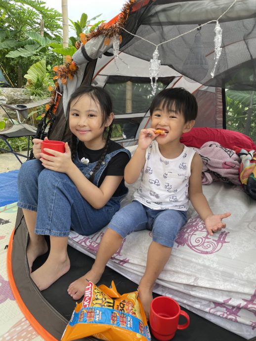 在行动管制期间,足不出户的他们在天台搭起帐篷露营,直到逐步开放,才出外宅旅游。