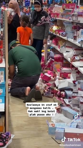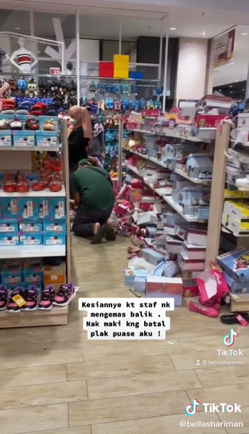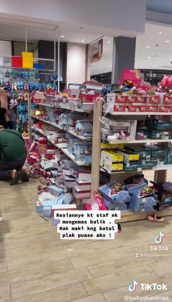 31岁巫裔女子贝拉周二(19日)下午5时许到汝来一间购物中心添购开斋节需用品,走进其中一间鞋店却被眼前一团乱的景象吓坏。