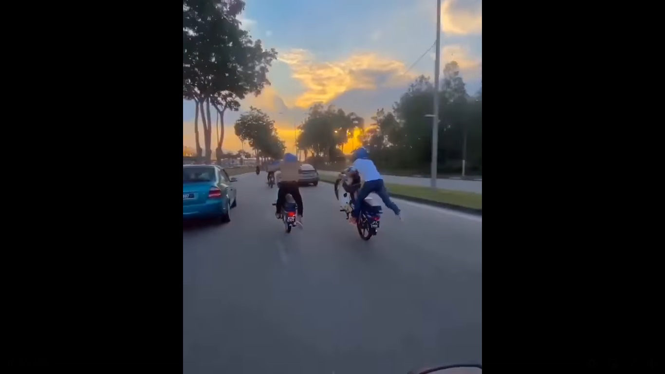 斯里阿南警区主任莫哈末苏海米今日发表文告指出,根据脸书流传的一段视频显示,2名骑着摩托车的男子,罔顾自身及其他道路使用者的安全。