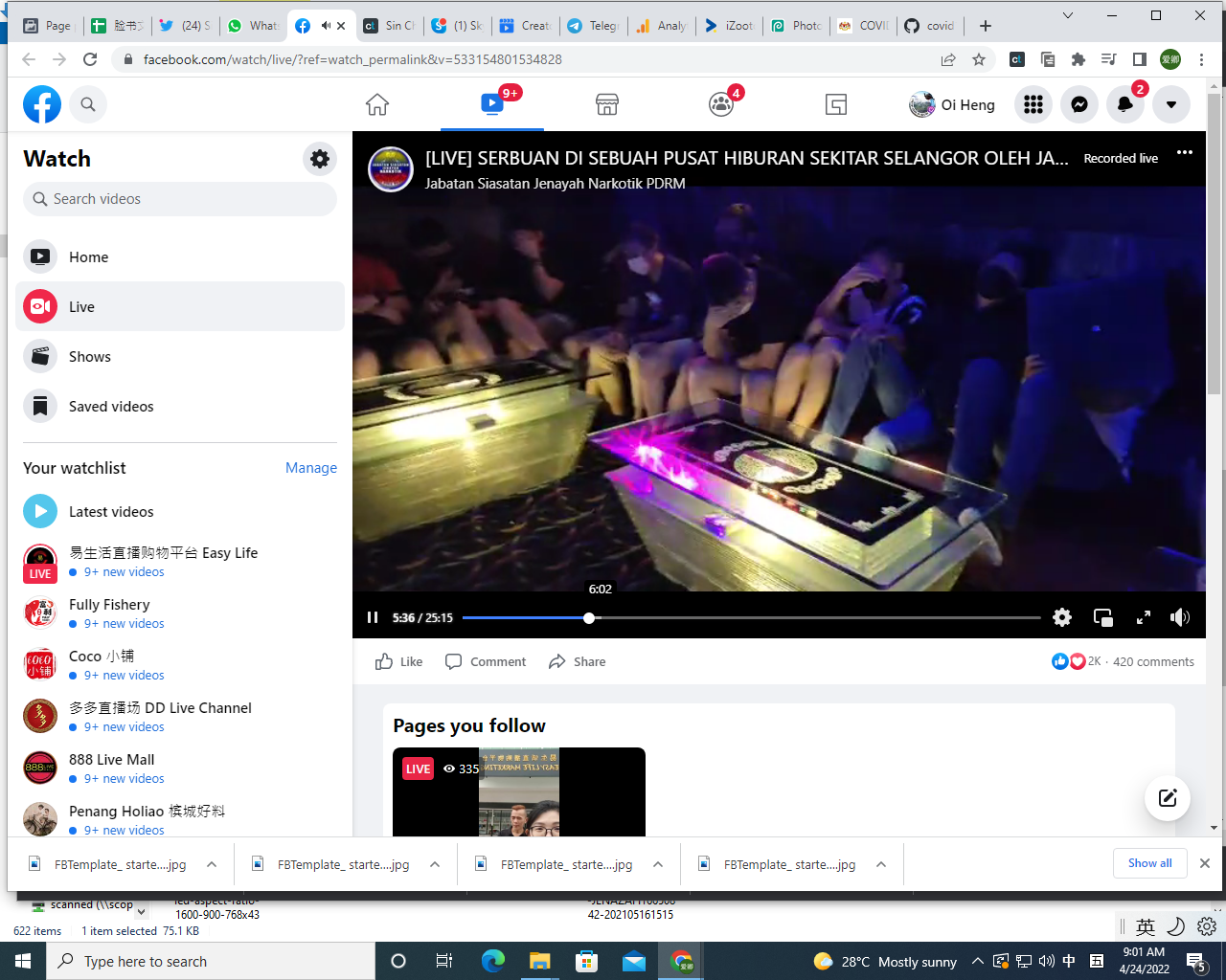 该部官方脸书今晨3时零2分进行逾25分钟的线上直播,拍下夜店内的情况及警方展开行动的过程画面,为现场的男女进行尿检和记录身份,同时展示起获的毒品。