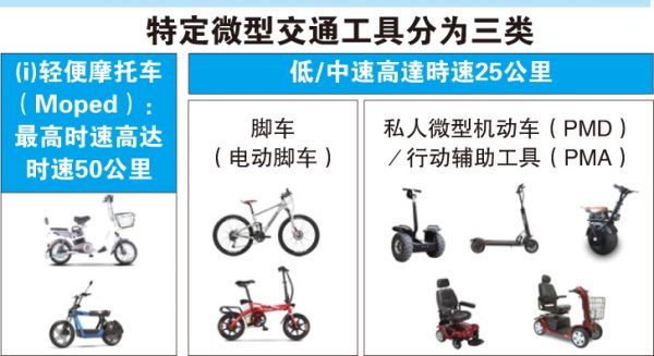 他说,近日越来越多微型交通工具在路上行驶,当中包括电动滑板车(e-scooter)、改装电动滑板车、轻便摩托车(Moped)以及脚踏车。