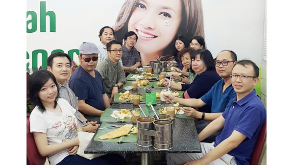 2月16日,原本在吉隆坡月树书店为锦树安排了分享会,但他那时还受重症肌无力之扰,意兴阑珊,只好作罢。我们下午到同善医院探望林金城,驻院年轻中医师竟是锦树书迷,我为他们拍了照。晚间约了朋友饭聚,顺道谈谈钱的用途。那晚出席的有梅淑贞、彭早慧、方路、许德发、张惠思、黄俊麟、张丽珊、杨嘉仁、方肯和周若涛,大家都看见锦树上一句话刚说完,下一句眼皮已经垂了下来。饭聚地点在八打灵再也马大医药中心对面、金城家后边的Sri Paandi印度餐厅,以前和金城来过多次,他的新书印好后还在这里签过书,引来侍应央他合照。我们把masala tea喝成masalah tea了。