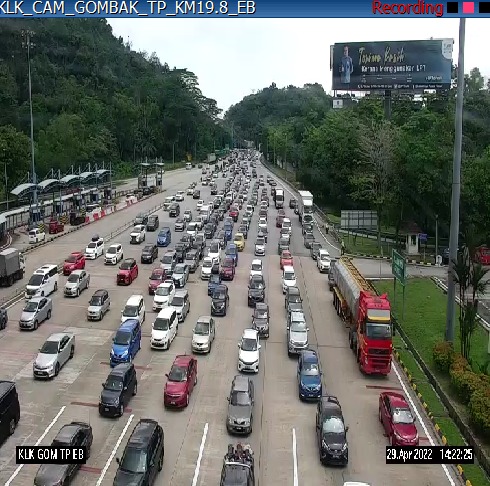 根据大道工程局(LLM)推特显示,下午2时20分,加叻大道进入鹅唛收费站之前,往关丹方向以及云顶森芭至联登的路段,开始出现交通缓慢的情况。