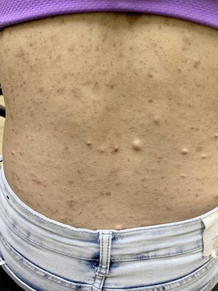 神经纤维瘤()是,神经系统上会长出柔软的肉瘤,皮肤上有类似牛奶咖啡色的斑点,小时候小霞偶尔会癫痫,必须吃药治疗,长大后病情有所改善,最近3年才停止吃药。