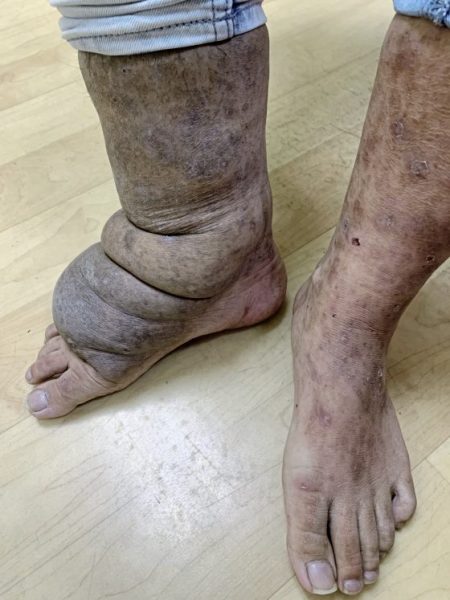 不知情的人,绝对不会猜到小霞是先天性神经纤维瘤患者,因为她是那么的开朗,尤其是谈到在菜市场卖菜的趣事时,表情生动,语气活泼,感觉就是一个充满生命力的阳光少女。只有掀开长袖衣裤时,才会看到她的身体上长满大大小小的神经纤维瘤,皮肤上也布满棕色斑点,双脚有点像“象脚”,长了一层层向下垂坠的多余皮肤。