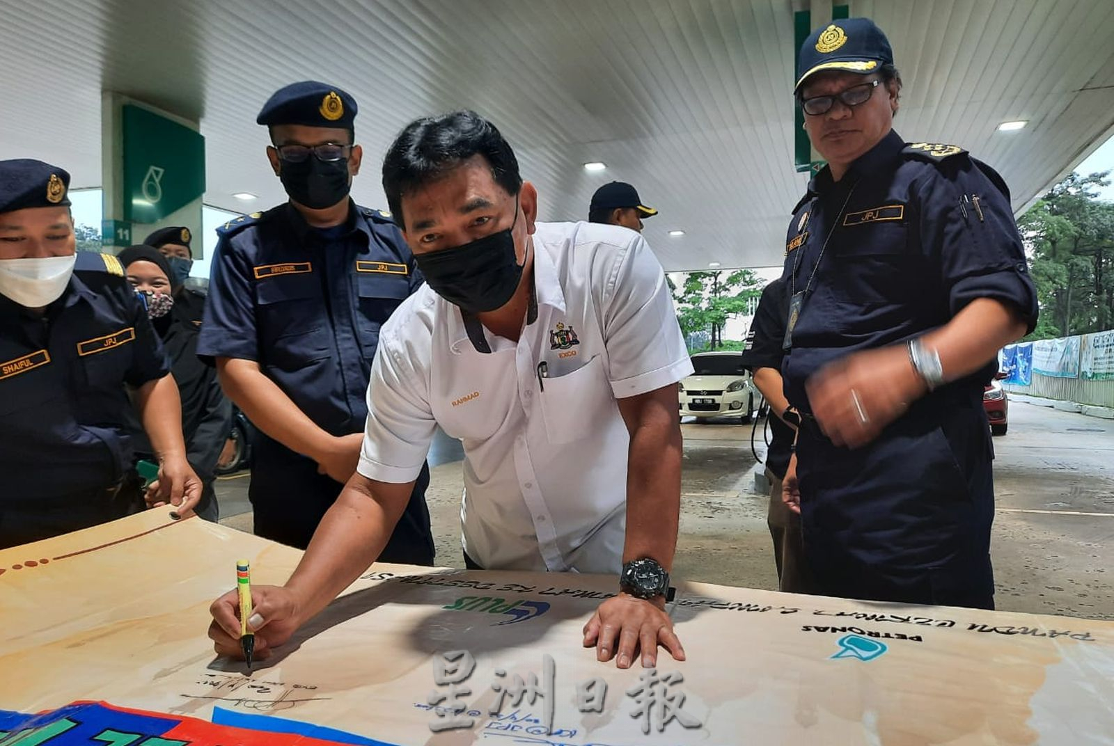 出席活动的包括甲州公共工程、交通、公共设施和水灾管理事务行政议员拿督拉末、甲州陆路交通局局长菲道勿、南北大道爱极乐休息站(往北方向)国油油站经理阿里哈菲兹。