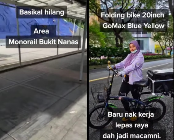 (八打灵再也7日讯)一名脚车送餐女子返乡过开斋节前,把其谋生工具脚车停放并上锁在吉隆坡一个单轨火车站,不料从家乡返回取脚车时,却发现其新买的脚车不见了,让她急得通过社交媒体发布视频,恳求网民帮忙寻回遗失的脚车。
