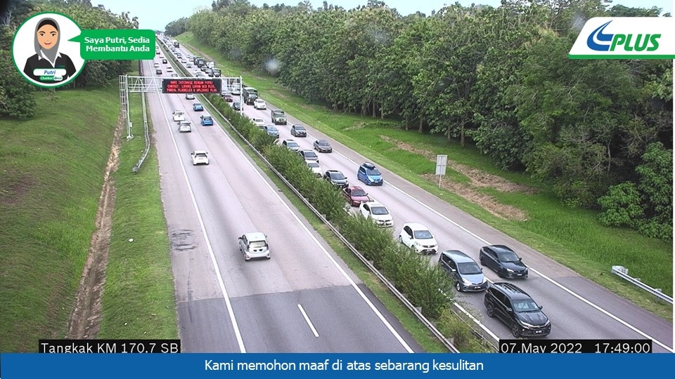 下午5时15分,南北大道大排车龙的路段,车龙都超过10公里,分别是柔府汽车城至桂花城(12.8公里)、江沙至双溪霹雳(13.2公里)、怡保北区至新邦波赖(15.3公里)、务边至打巴南区休息站(15.8 km)、美罗至宋溪(19.8公里)和-武吉柏伦东至万挠(12公里)