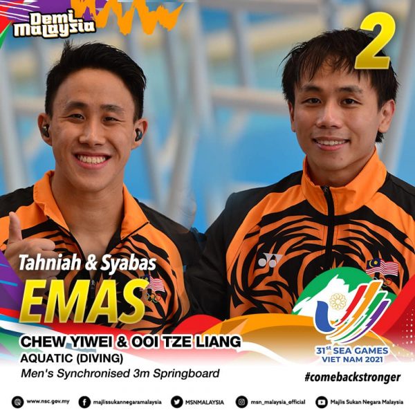 自2007年泰国呵叻东运会起,大马便未曾旁落男双人3公尺跳板金牌。