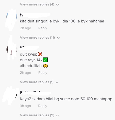 不少网民对年纪小小的比拉,获得逾万令吉青包感到惊讶,有者留言指“比拉3天的青包,等于我们3年的储蓄”、“不是公积金,是青包1万4000”、“拿的钱还多过提领1万公积金”、“青包的钞票都是一张张50或100令吉”、“这笔钱可以用作买摩托车或汽车的首付了”、“我的青包不到100令吉”等竹。