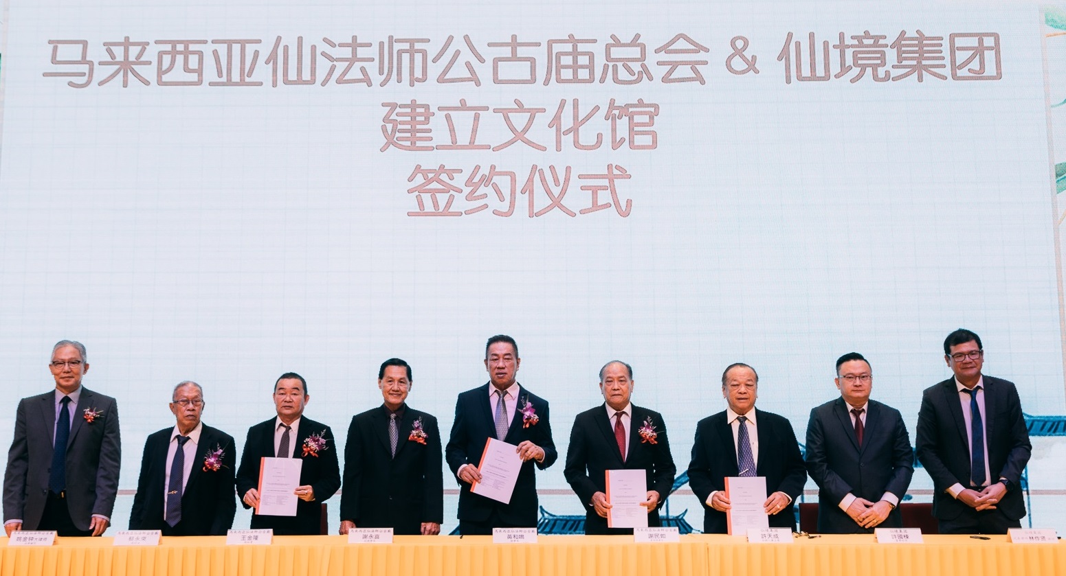 马来西亚仙法师公古庙总会总会长黄和鸣指出,总会与仙境集团签约及举行“马来西亚仙法师公古庙总会文化馆”动土礼,这两项仪式圆满举行,可说是膜拜仙法师公古庙的荣誉及弘扬仙佛法,迈向新的里程碑。总会与仙境集团合作建立文化馆,要归功予首100为发起人,是他们订购骨灰位,总会才争取这座面积60×70的三层楼文化馆永久使用权。