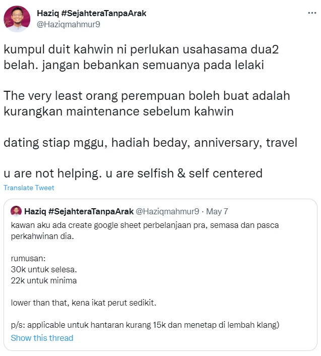 kumpul duit kahwin ni perlukan usahasama dua2 belah. jangan bebankan semuanya pada lelaki