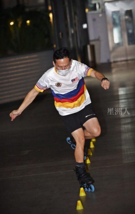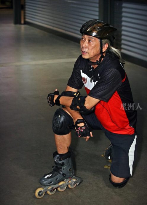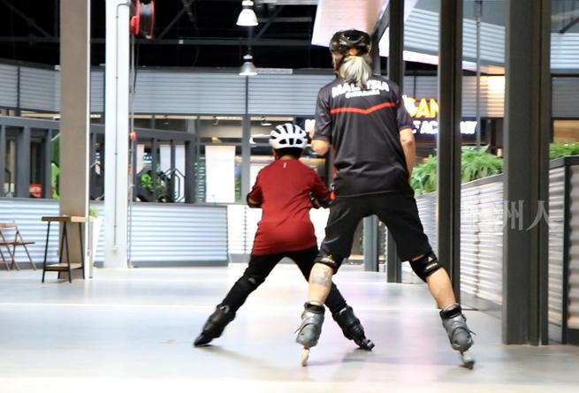 很多人以为轮滑是年轻人的玩意,老了不适合玩,现场另一名轮滑教练陈进华,正正打破这刻板印象。虽已迈入花甲之年,对轮滑的热诚却丝毫不减,只见他在场上飞奔驰骋,矫健的身姿,有如炫酷的“银发追风者”,让人羡慕和敬佩。