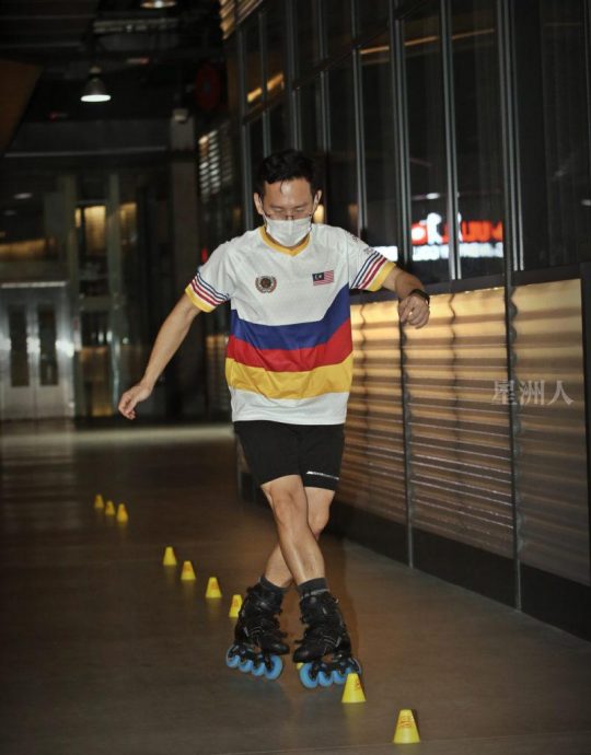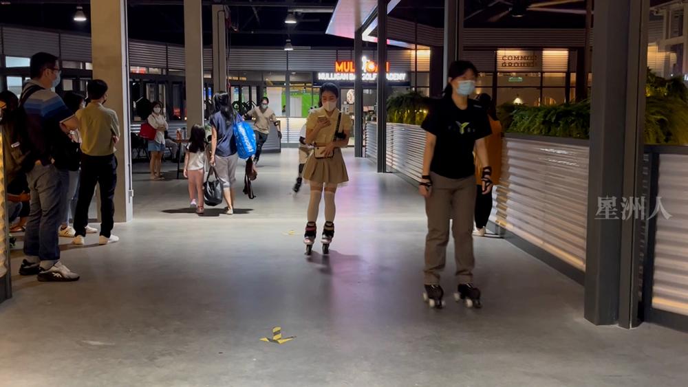 采访当晚8点,前来雪州八打灵再也Jaya One商场玩轮滑的人潮越来越多,除了年轻男女,也有父母小孩,聚集着一众轮滑新手和玩家,在场内轻松愉快地转了一圈又一圈。