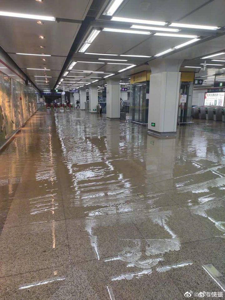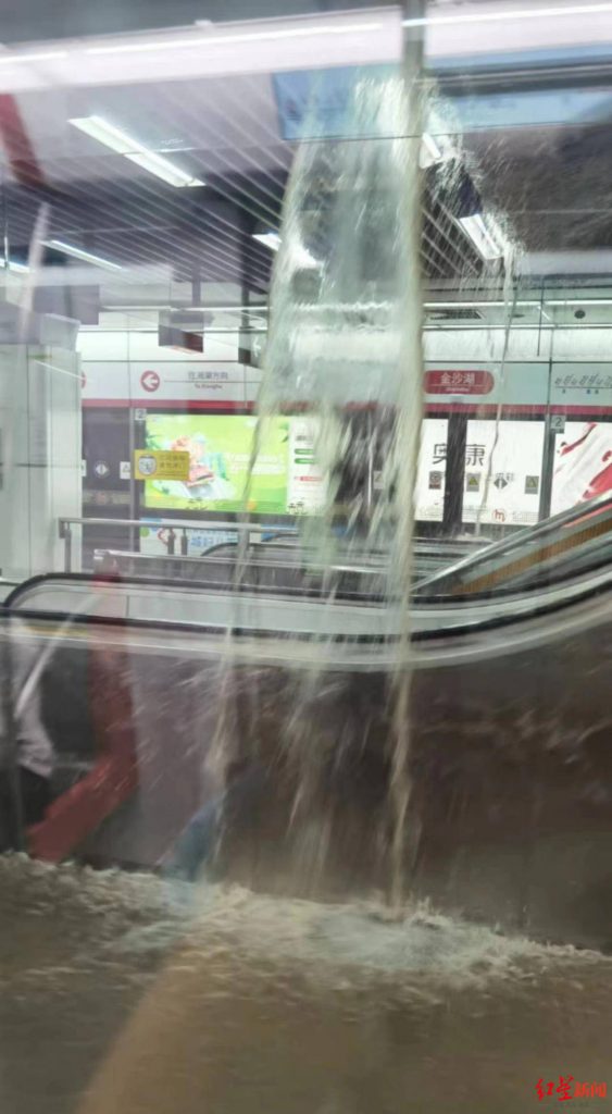 今次事故发生于周三下午3时许,金沙湖公园湖水溢出并倒灌入金沙湖地铁站,导致站内严重水浸。从网上片段所见,车站天花管道不断有水渗漏,月台甚至出现深达一公尺的积水。
