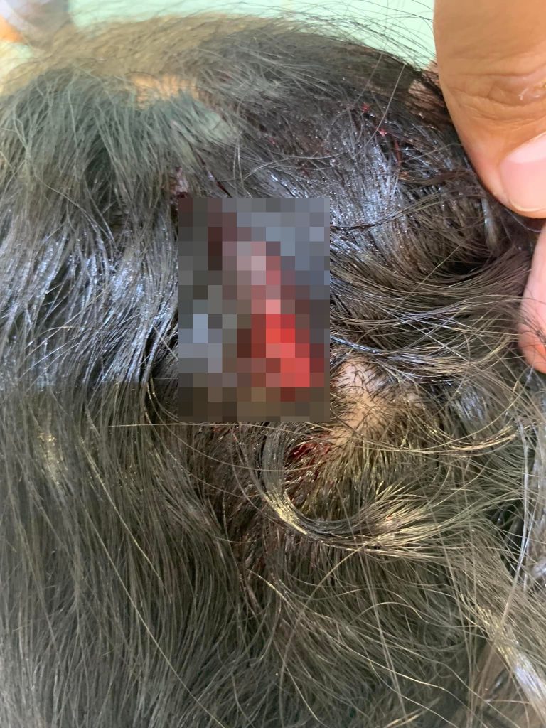 在与家人取得联系后,女伤者被紧急送入巴生中央医院急诊室接受治疗,头部被缝了5针。